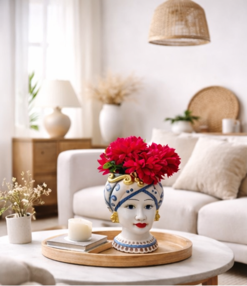 Cada pieza es única, con colores vivos, detalles minuciosos y una elegancia que transforma cualquier espacio en un rincón del Mediterráneo. Ya sea para decorar tu hogar, jardín o negocio, una Testa di Moro aporta ese toque de autenticidad italiana que enamora a primera vista.
